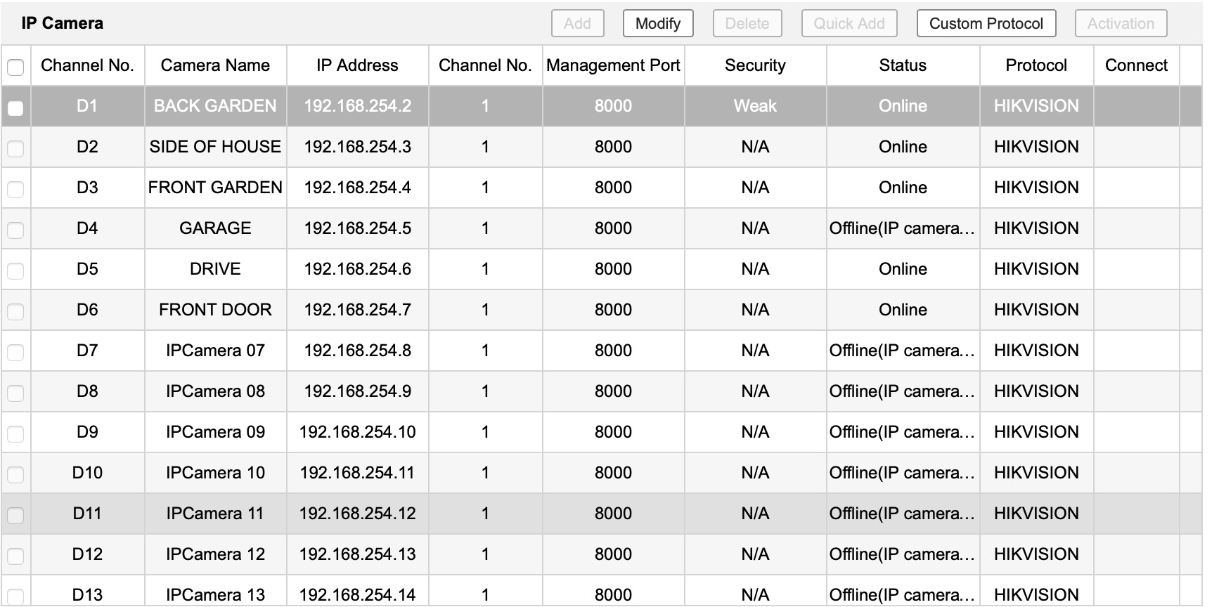 I reset my 7716NI-E4 to factory default settings and now I can't access each camera individually using the URL links when you log in via browser? (usually it says connect under the connect tab). I've setup the IP address/gateway and dns exactly the same as it was.