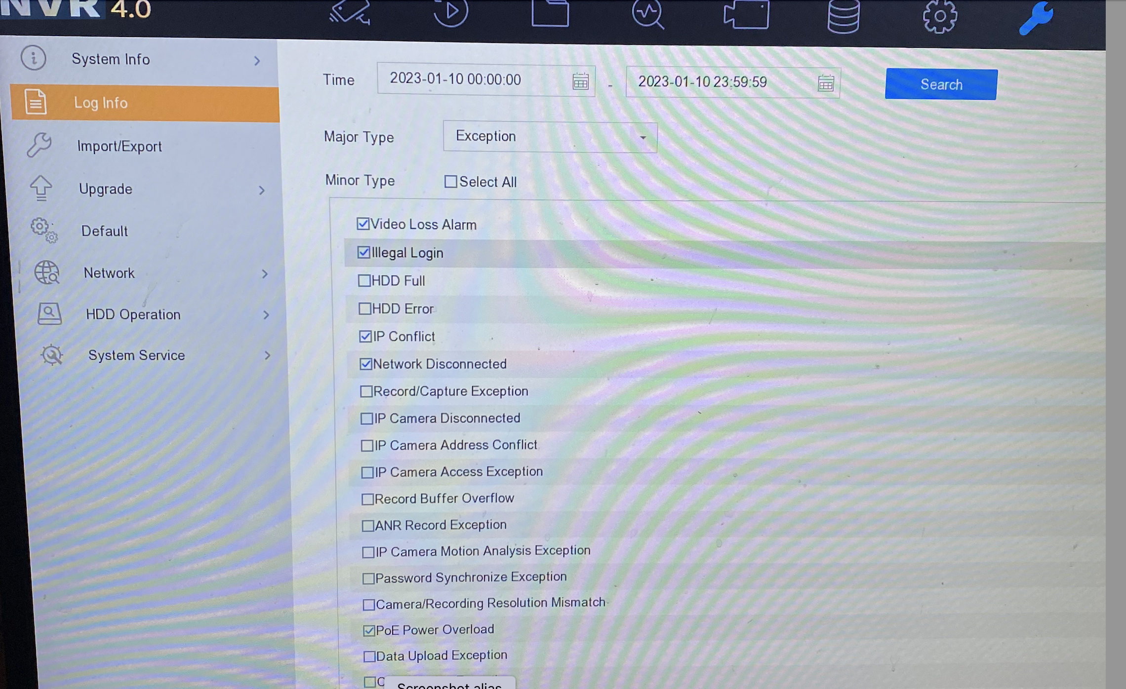 Looks like we’re getting closer to the root cause.Ok, I dropped by the office, here’s a couple pics. I will have to look up a network connectivity log for the nvr, not sure where that is. But for now…